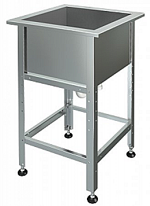 Емкость мойки изготовлена из нержавейки t=0,6 AISI 304, гофросифон для слива воды в комплекте, каркас, стойки-уголок оцинкованный t=1,0. Мойки без отверстия под смеситель.