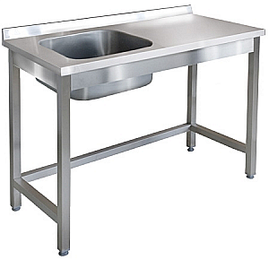 Стол пристенный с обвязкой по трем сторонам и ванной моечной изготовлен из нержавеющей стали AISI 304