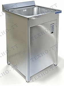 Ванна моечная цельнотянутая из нержавеющей стали AISI 304 (1 ёмкость), размер ёмкости 500/500/300, каркас сварной из нержавеющей стали AISI 304, распашная дверка, полка
