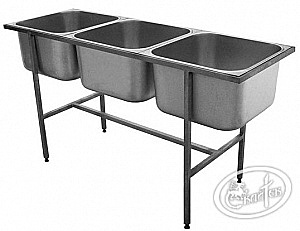 Ванна моечная сварная трехсекционная мойка 600x600x450 мм. каркас сварной труба 40х40х1,2 мм, обвязка с трех сторон, емкость нержавеющая сталь AISI 304, с бортом, регулируемые опоры.