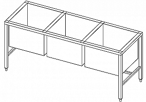 Ванна моечная сварная трехсекционная размер ванны 1880x700x870, размер мойки 600x600x450 мм