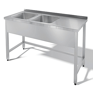 неразборная, борт, две цельнотянутые мойки 500х500х300 слева, отв. под смеситель между мойками, фартук передний, обвязка с 3-х сторон, столешница – металл AISI 304, профиль 40х40, чертеж 4223П-19_03_27-ВМ - СТАНДАРТ