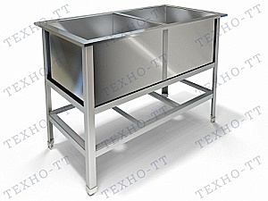 Ванна моечная сварная из нержавеющей стали AISI 304 (2 ёмкости) размер ёмкости 700/700/450, каркас сварной из крашеного металла, обвязка