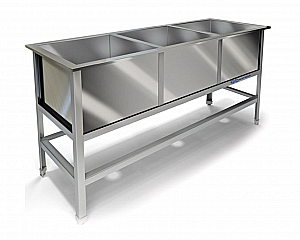 Ванна моечная трехсекционная на нержавеющем каркасе AISI 430, емкость сварная.