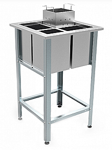 Ванна моечная для мойки яиц сварная, 4 ёмкости из нержавеющей стали aisi 430. Размеры мойки 238х238х400. Каркас уголок оцинкованная сталь, 4 сифона, 4