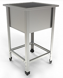 промышленности и общественного питания. Имеет одну ёмкость и нержавеющей стали AISI430 толщиной 0,8 мм. Каркас из оцинкованной стали толщиной 0,8мм. Под ёмкостью обвязка с 4-х сторон. Каркас разборный. Ножки из уголков 40х40мм оцинкованной стили толщиной 0,8мм; имеют обдавку по краям, что дает суммарную толщину 1,6мм. Габариты: 630х630х850, (ёмкость 530х530х350)