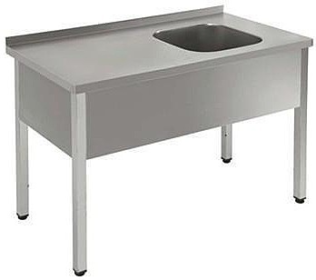 Разборная, борт, одна цельнотянутая мойка 400х400х300 справа, отв. под смеситель, фартуки с 4-х сторон, столешница – металл AISI 304, профиль 40х40, чертеж 4088П-19_03_12-ВМ - СТАНДАРТ