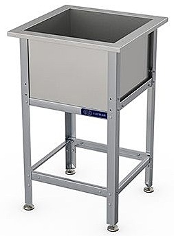 Габариты 630х630х870мм, внутренние размеры ванны 530х530х400мм, сварная, 1 секция, ширина бортов по периметру ванны 50мм, диаметр сливного отверстия 48мм, ванна AISI304 0,8мм, каркас 0,8мм AISI430, профиль уголок 40х40мм, регулировка ножек ±20мм.Все кромки ванны и элементов каркаса имеют подгиб (фальцовку). В комплект поставки ванны входит система разрыва струи.