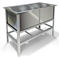 Ванна сварная из стали AISI 304 (2 емк.)430х430х300, каркас разборный, уголок из нержавеющей стали AISI 430, толщина 1,5 мм, рабочая поверхность изнержавеющей стали AISI 304, толщина металла 0,8 мм.