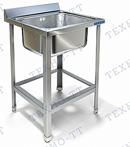 Ванна моечная цельнотянутая из нержавеющей стали AISI 304 (1 ёмкость), размер ёмкости 400/500/250, каркас сварной из крашеного металла, обвязка, выпуск 90, перелив