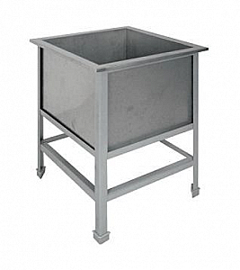 Одна сварная емкость размером 430х430х300 из нержавеющей стали марки AISI 304 толщиной 0,8мм. Каркас сварной из уголка 40х40 нержавеющей стали марки AISI 430 толщиной 2мм, внизу по периметру обвязка. Ванна комплектуется выпуском с нержавеющей решеткой и механическим запорным клапаном, диаметр выпуска 90мм, диаметр подключаемого сифона 50мм, регулируемые опоры. На дне ванны ребра (лучи) для жесткости и снижения вибрации. Ванна поставляется в собранном виде.