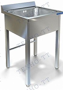 Ванна моечная цельнотянутая из нержавеющей стали AISI 304 (1 ёмкость), размеры ёмкости 600/500/300, каркас сварной из нержавеющей стали AISI 304 (труба), фартук с трех сторон, выпуск 90, перелив