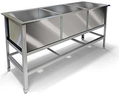 Ванна моечная сварная из нержавеющей стали AISI 304 (3 ёмкости), размер ёмкости 530/530/400, каркас сварной из крашеного металла, обвязка