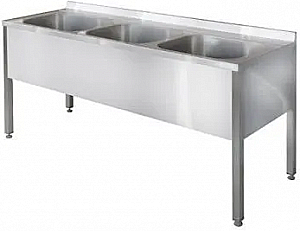 Три цельнотянутых емкости 500х500х300мм, сливной сифон, бортик, рег. опоры, нерж. сталь AISI 304