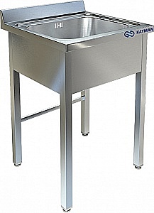 Ванна моечная одинарная на каркасе из трубы нержавеющей стали AISI 430, емкость цельнотянутая.