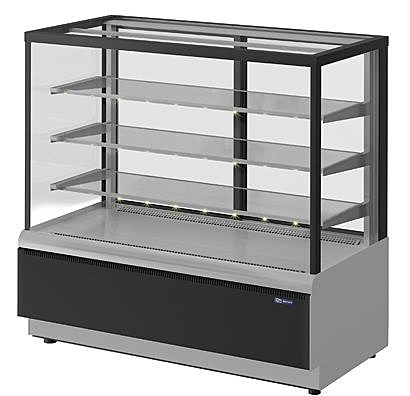 Вместительная, качественная, с эффектным современным дизайном кондитерская витрина Витрина кондитерская KAYMAN K-ВК-1300 ЛЮКС КВАДРО СЕРЕБР не даст покупателям пройти мимо выставленных в ней пирожных, тортов и других десертов.