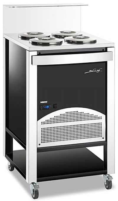 Вмещает 8 x 3.7 л. емкостей или 4 x 7.1 л. общим объемом 30 л. Необходимый десерт всегда готов для подачи и имеет оптимальную температуру и консистенцию. (Емкости и внешняя защита в комплект не входят)