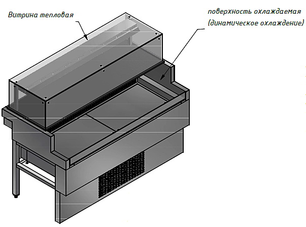 На картинке представлена сборная позиция из тепловой витрины ВТВ-14.44.6/01, поверхности охлаждаемой ПОВД-14.46.5/Н и каркаса сварного ПН-15.68.05/L/01