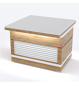 Прилавок нейтральный относится к относится к Шведским столам «Filin» торговой марки «Refettorio». Прилавок используется в качестве вспомогательного элемента. Исполнение - островное. Прилавок без полки над столешницей. Столешница из искусственного камня. Максимальная распределенная нагрузка на столешницу прилавка – 100 кг. Имеет светодиодную подсветку фасадной части.В стандартный комплект поставки боковые фасады не входят (доп. опция)