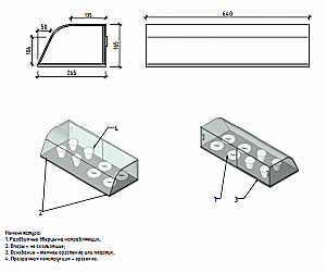 Оргстекло 4 мм (каркас), оргстекло 3 мм дверцы и полки, дно из 5 мм черного оргстекла