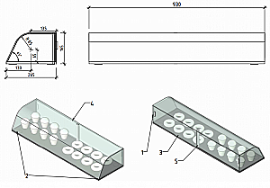 Оргстекло 4 мм (каркас), оргстекло 3 мм дверцы и полки, дно из 5 мм черного оргстекла
