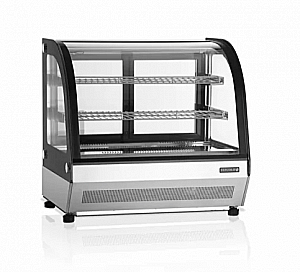 Данная холодильная витрина с изогнутой стеклянной передней частью отличается высоким качеством благодаря отделке из нержавеющей стали и двойному остеклению. За счет небольшого размера ее можно разместить на прилавке для привлечения покупателей выпечкой. Сзади она оснащена стеклянными раздвижными дверцами, обеспечивающими легкий доступ к содержимому. Витрина оснащена стационарными проволочными полками и светодиодной подсветкой для оптимального представления продукта.