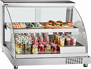 Витрина холодильная настольная типа ВХН-70-01 предназначена для демонстрации и поддержания в охлажденном состоянии различных продуктов, холодных закусок и третьих блюд, выкладываемых непосредственно на перфорированную полку или функциональные емкости и реализации их потребителю. Устанавливается на предприятиях общественного питания самостоятельно или в составе технологических линий.