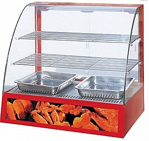 Витрина тепловая предназначена для экспозиции пиццы, булочек, тортов, пирогов и различных закусок. Витрина поддерживает постоянную температуру, сохраняют вкус и мягкость продуктов. Витрина тепловая изготовлена из нержавеющей стали, с четырех сторон расположено закаленное стекло.