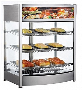 Витрина тепловая с изогнутым фронтальным стеклом и подсветкой декоративной верхней части с возможностью вставки графической рекламы.