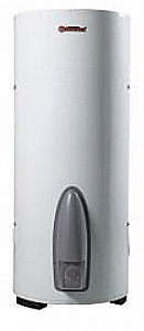Электроводонагреватель Thermex ER 300V представляет собой емкость объемом 300 литров, состоящую из двух стальных баков, вложенных друг в друга. Поверхность внутреннего бака покрыта специальным стеклофарфоровым покрытием, защищающим от коррозии и тем самым продлевающим срок службы бойлера. Прибор также снабжен экологически чистой пенополиуретановой теплоизоляцией, что сокращает потери тепла и экономит электроэнергию. В эту емкость вмонтированы два патрубка. Один (с синим кольцом) — для впуска холодной воды. Второй (с красным кольцом) — для выхода нагретой горячей воды. Нагрев воды внутри бака производится при помощи расположенных там трубчатых электронагревателей (ТЭНов), управляемых термостатом.