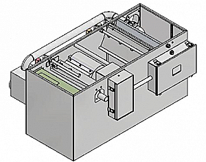 Запрограммированный цикл удаления жиров начинается с того, что жиры вначале взбалтываются с помощью водоструйной системы, автоматически активирующейся электромагнитным клапаном. Это процесс помогает взвешенным/эмульгированным частицам жира отделиться от воды и направиться для дальнейшего сепарирования и направляет жировые отходы к барабанному скимминговому механизму. Затем жиры подогреваются и разжижаются. Жидкий жир затем сепарируется и передается во внешнюю ёмкость.
