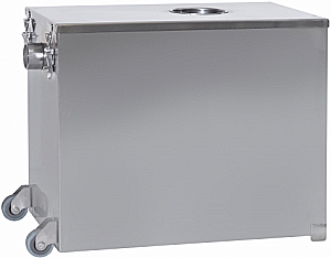 Жироуловитель под мойку. Производительность 1,5 м. куб./ч., пиковый сброс 75л. Крышка оснащена уплотнительной резинкой, гидрозатвором, а также предназначен для монтажа с разрывом струи. Съемный перфорированный лоток для сбора мелких отходов. Диаметр входного отверстия 80мм, выходного патрубка - 50мм. Подходит для установки под мойки габаритами от 400х700х850 с ваннами до 500х500х300. Материал сталь AISI 304.