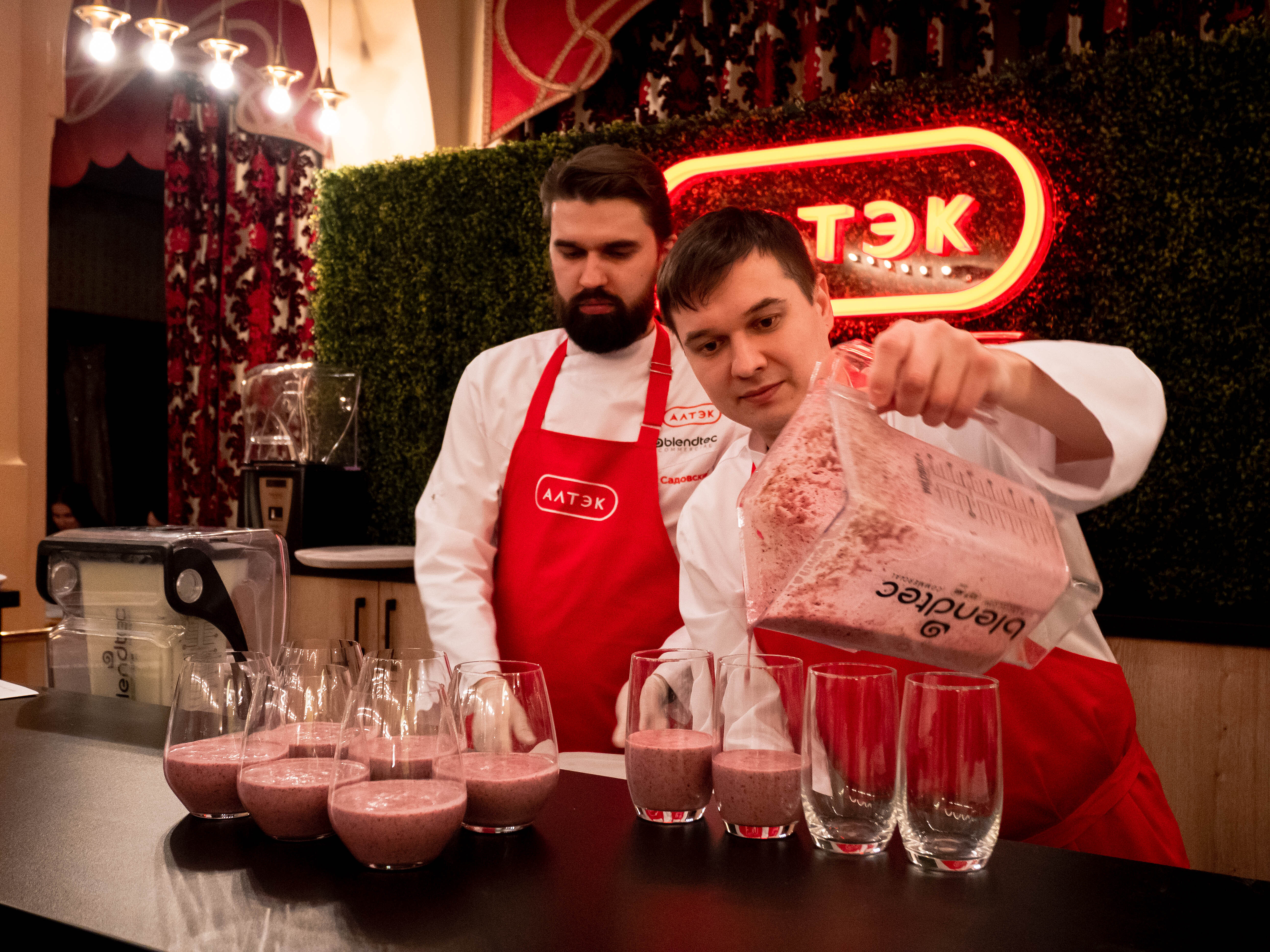Компания «Алтэк» выступила генеральным партнером конкурса. Наши бренд-шефы весь вечер угощали участников и жюри вкусными и полезными напитками, приготовленными на бесшумном барном оборудовании Blendtec.