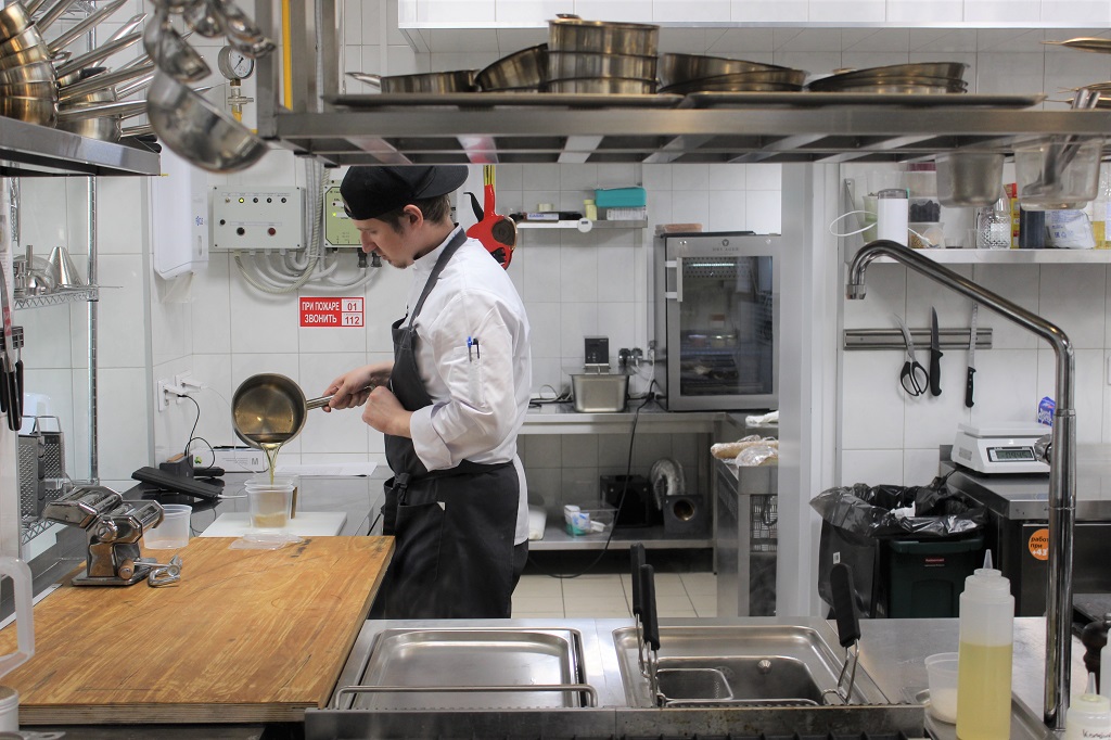 В меню всегда присутствуют сезонные фрукты и овощи, свежая выпечка, домашняя паста, изысканные десерты собственного производства, свежезаваренный кофе. Кухней руководит шеф-повар Никита Лемешев (информация актуальна на май 2019 года).