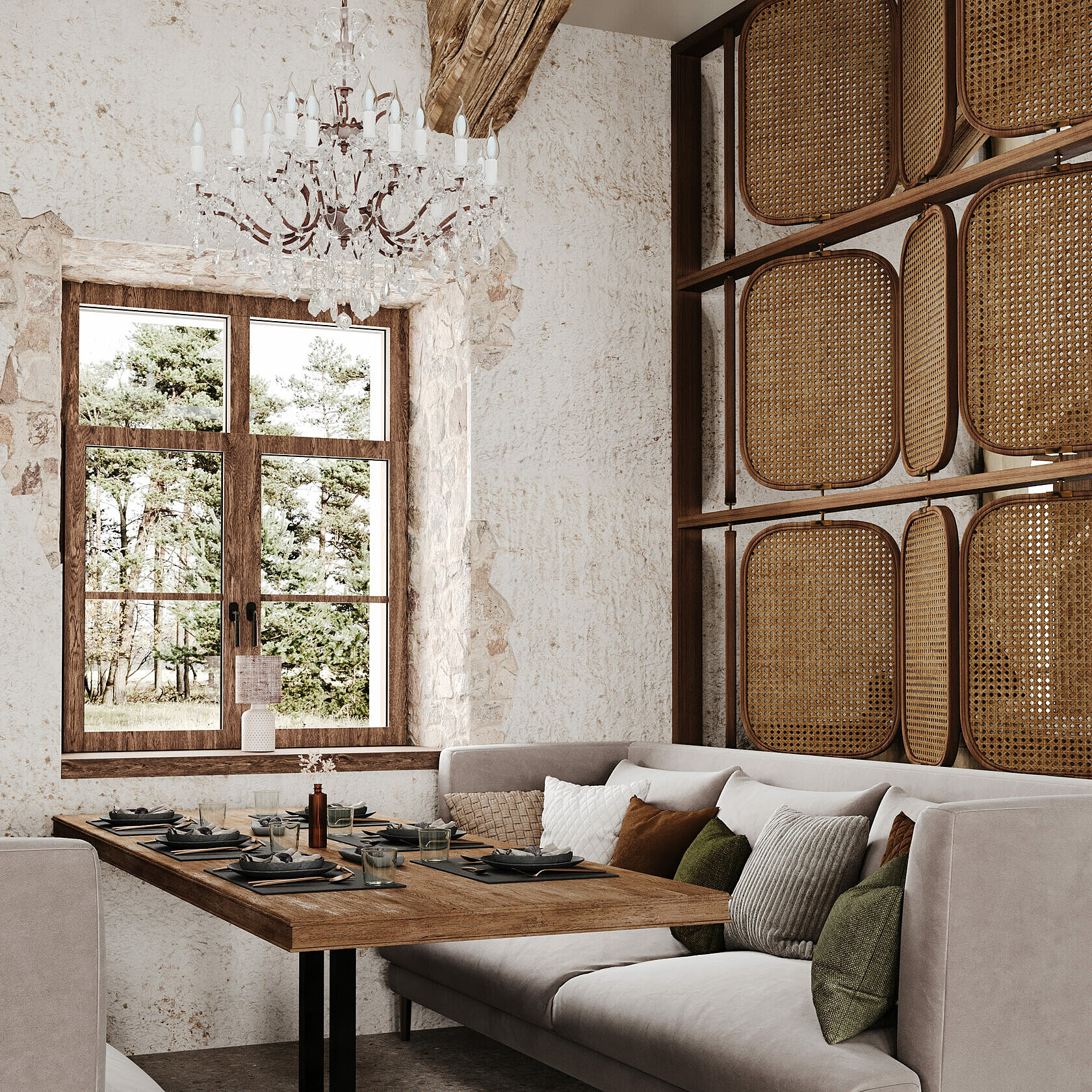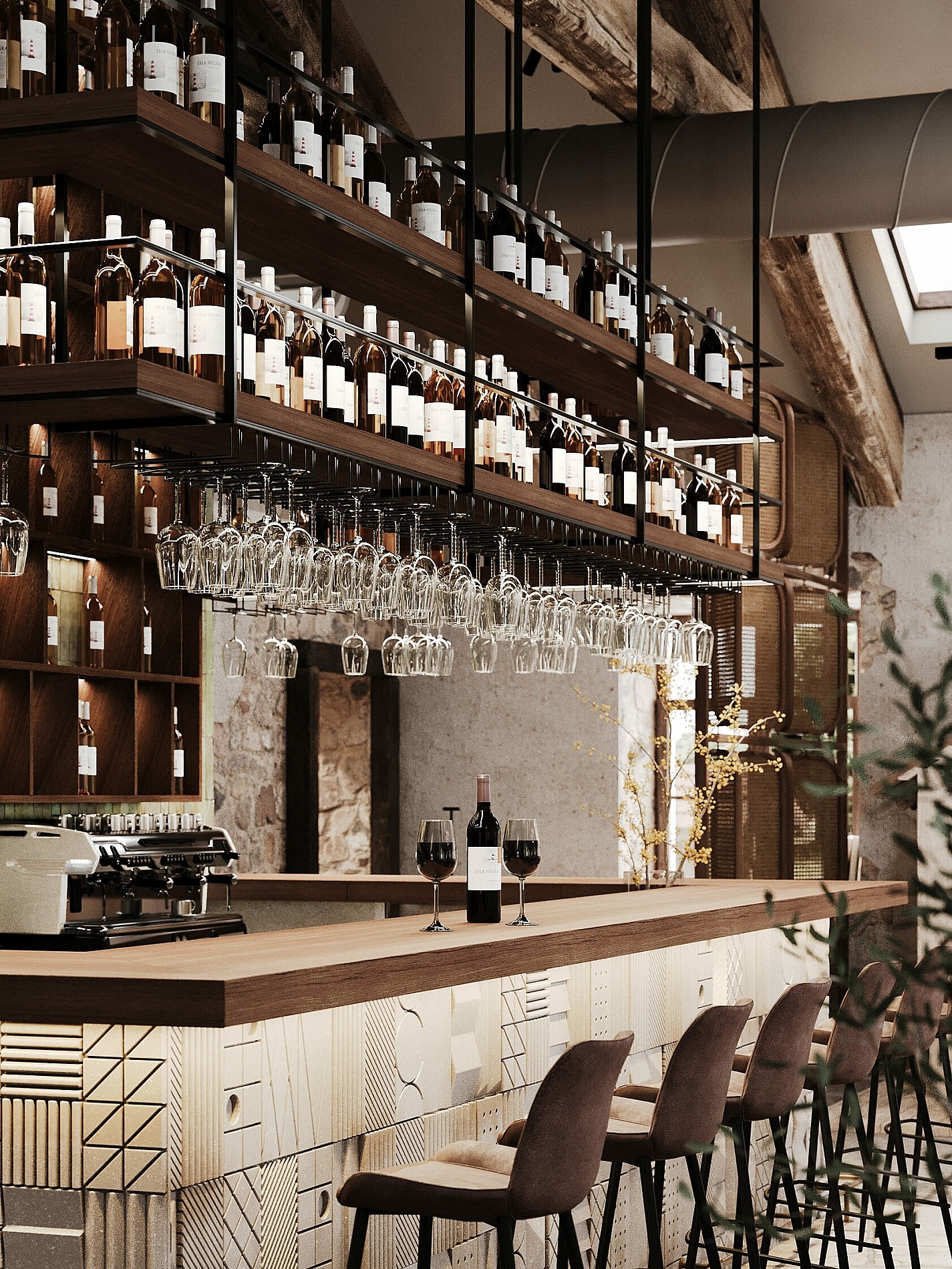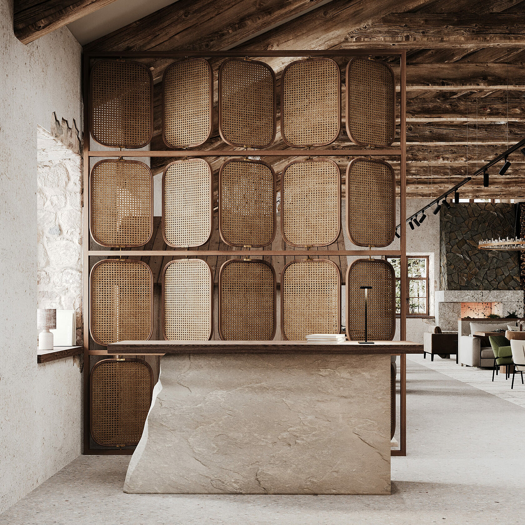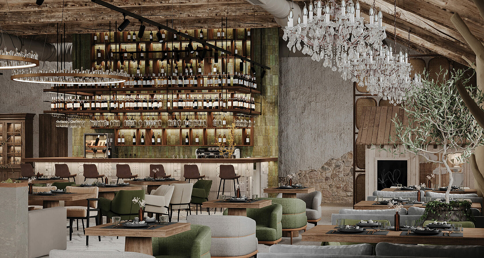 Дизайн-проект разработала петербургская студия с акцентами на псковскую архитектуру. Интерьер соответствует месту и времени, интегрируя элементы стиля лофт в общее пространство. При создании комплекса дизайнеры использовали природные материалы: камень, дерево, металл. При этом предпочтение отдавалось спокойным, приглушенным тонам.