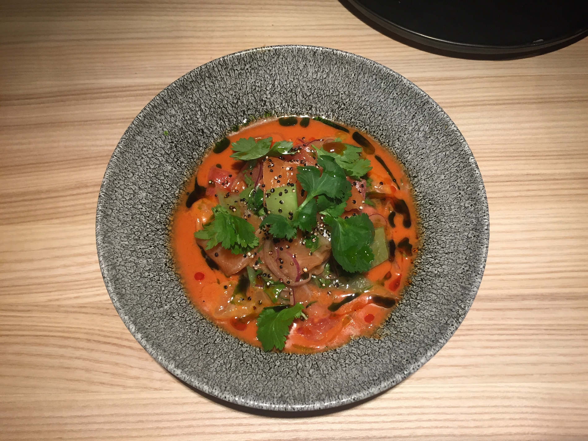 Меню Birch – лаконичное и очень выверенное. В нем преобладают азиатские и европейские мотивы. Пробовать можно и нужно все: домашний кукурузный хлеб, севиче их тунца с хурмой, паштет из индейки, нежнейшее татаки из говядины, десерт из баклажана с мороженым (это просто бомба!). Официанты любезно рекомендуют напитки и вообще обслуживают очень быстро и качественно.