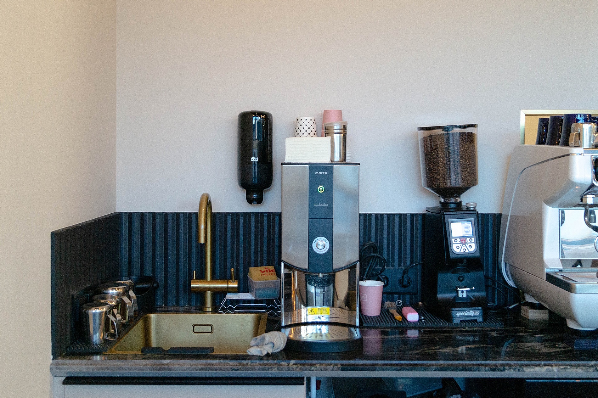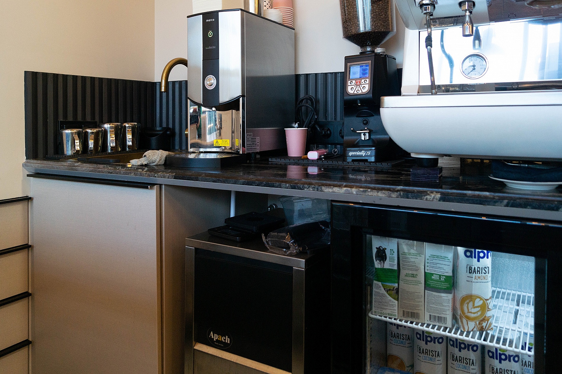Для зоны бара мы отгрузили автоматический кипятильник MARCO и барный холодильник HURAKAN вместимостью 224 бутылки.