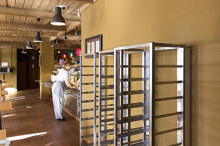 В «Бистро-сервис» посетителям ежедневно предлагают свежую выпечку собственного производства – пирожки, кондитерские изделия. Приготовление изделий из теста процесс трудоемкий, однако, специалисты «Алтэк» подобрали минимальный набор оборудования для эффективной работы с выпечкой: 2-ух скоростной тестомес 3F ALIMACCHINE SM 30 с фиксированной дежой, электрический расстоечный шкаф APACH A9/12, конвекционную электрическую печь APACH A9/6RXS.
