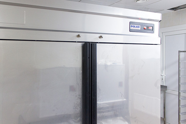 Холодильное оборудование представлено брендами POLAIR и Бирюса. Для хранения охлажденных полуфабрикатов был выбран морозильный ларь POLAIR SF140LF-S, а для оснащения холодильной камеры – среднетемпературная сплит-система POLAIR SM 226 SF. Она предназначена для камеры объемом до 30,5 м³ и способна поддерживать постоянную температуру в диапазоне от -5 до +10 °С.