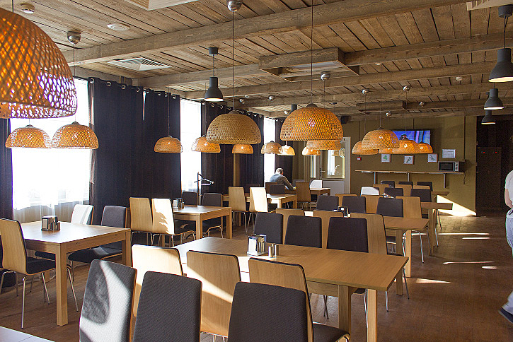 Столовая «Бистро-сервис» рассчитана на 56 посадочных мест. Она обслуживает посетителей посредством линии раздачи. Здесь представлено порядка 6-7 видов салатов и холодных закусок, 3 вида супов, 4-5 горячих блюд, несколько видов гарниров. Гостям предлагают чай, кофе, свежие соки, десерты. 70% наименований в меню обновляется раз в две недели.