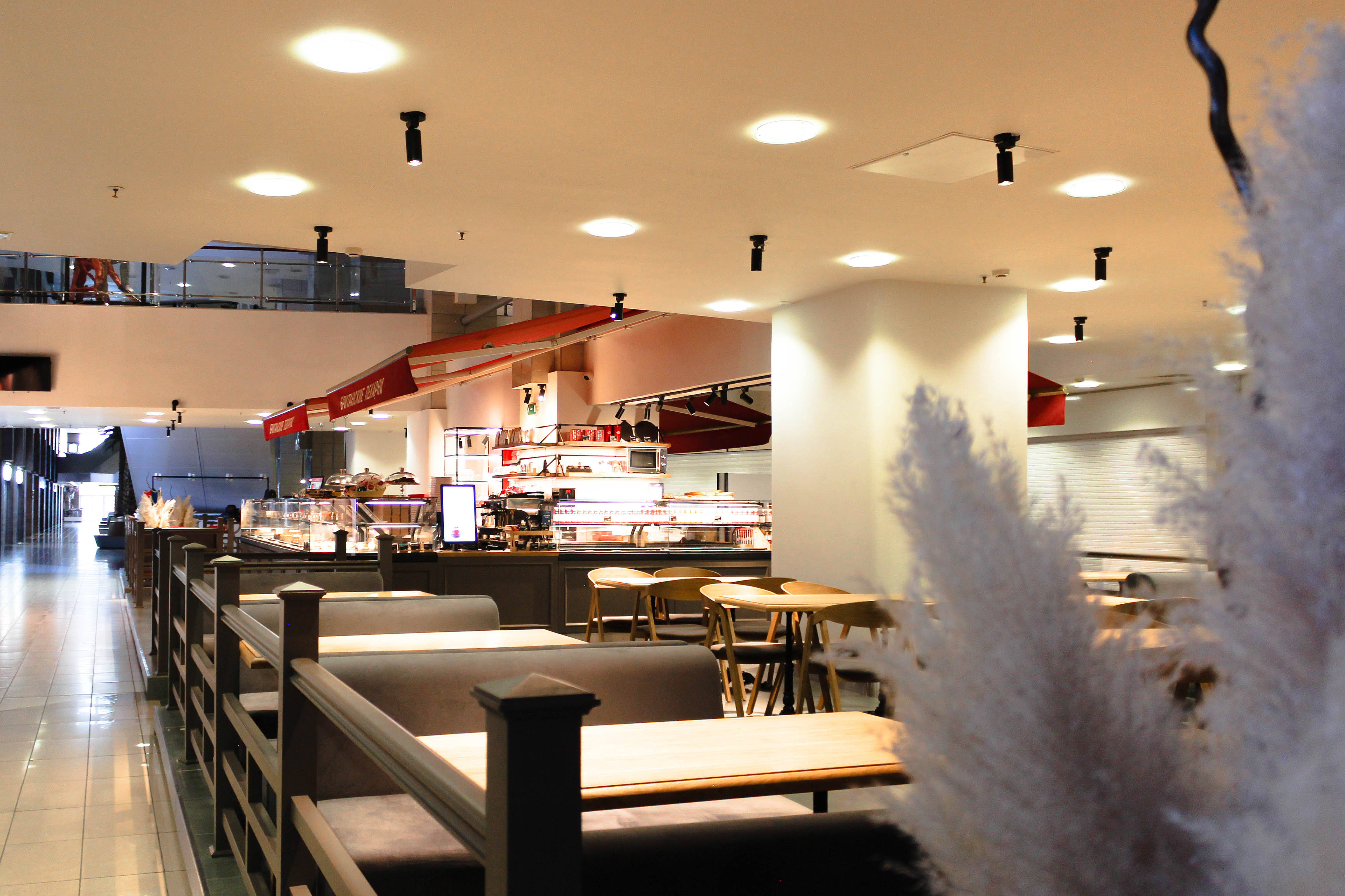 В сентябре 2021 года в ТРК «Меркурий» открылся одноименный фудпарк. Резидентом стала сеть British Bakery. Для корнера мы поставили все необходимое оборудование. В частности, расстоечный шкаф и пекарскую печь UNOX, соковыжималку SIRMAN, блендер BLENDTEC и электрокипятильник HURACAN. Для выкладки свежих круассанов и булочек была изготовлена витрина БСВ.