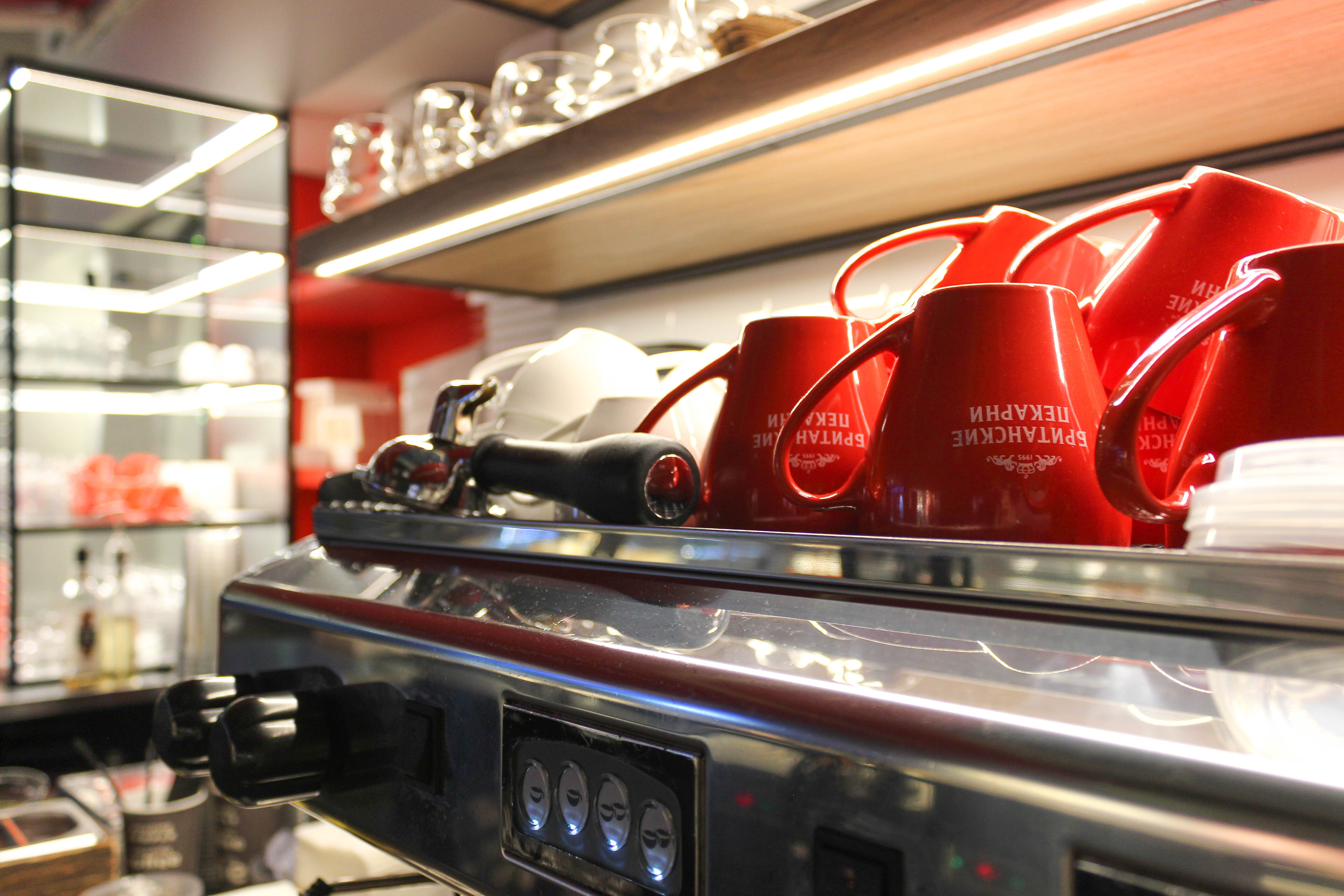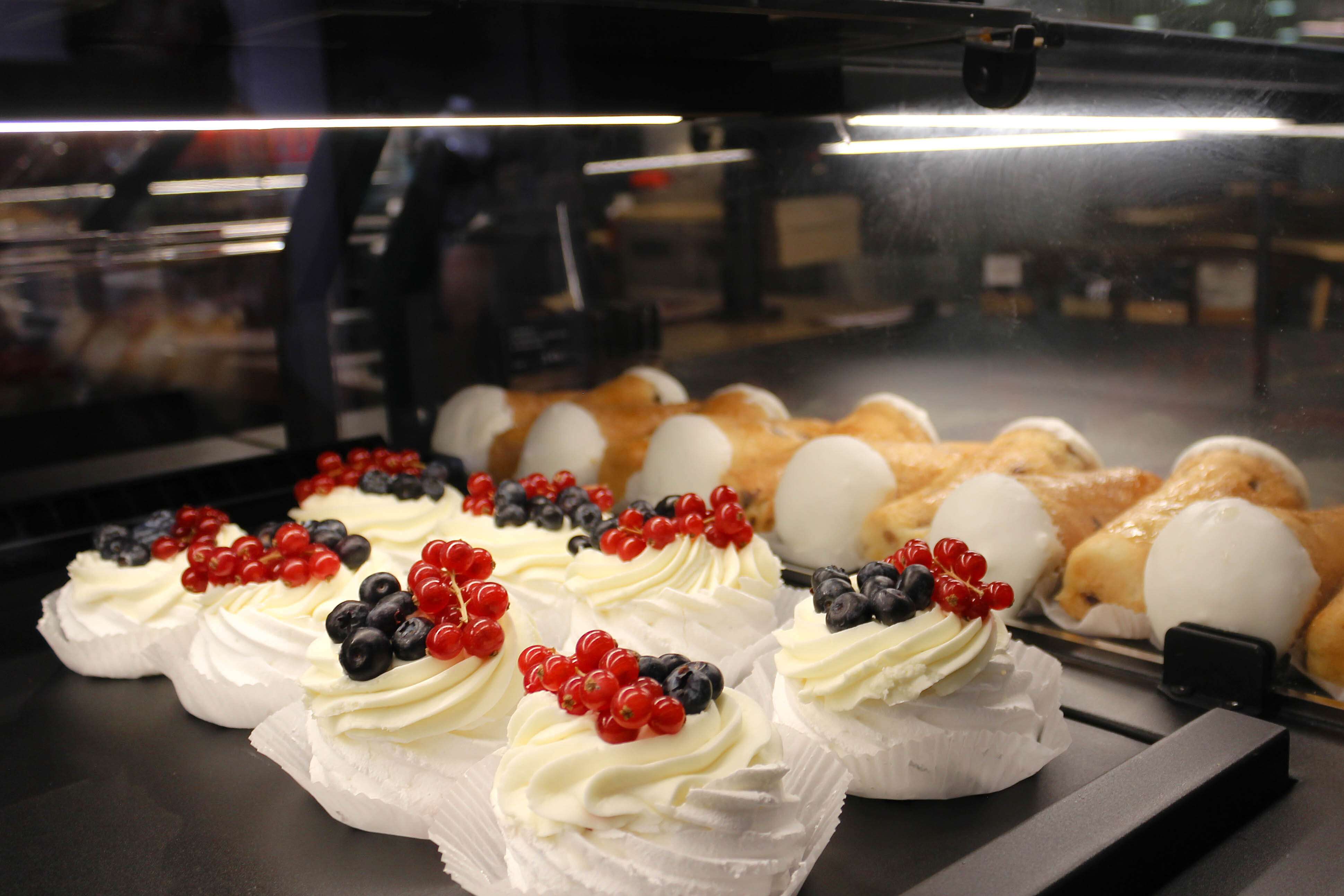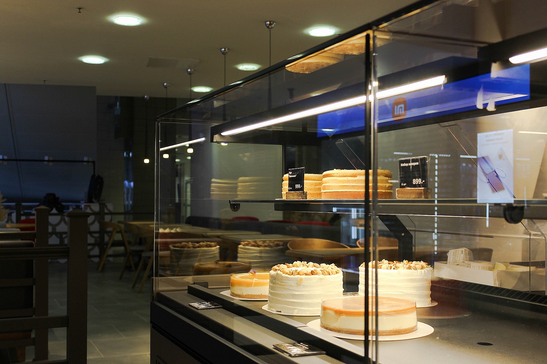 Для выкладки продукции в зале завод BSV-INOX разработал эксклюзивные кондитерские витрины. Специально для «Британских пекарен» была создана линия из 8 нестандартных изделий, определённого цвета и размера по чертежам заказчика.