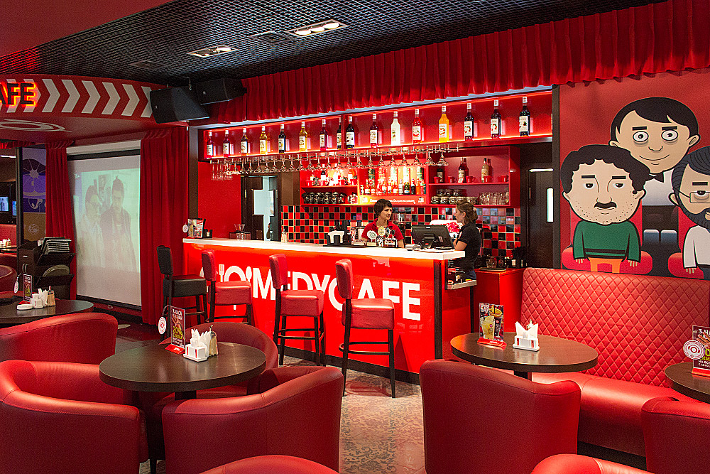 Каждое заведение «Камеди» – это место, где можно собраться с друзьями и продегустировать юмор на вкус, ведь помимо салатов и сэндвичей и коктейлей в этом кафе можно попробовать свои силы в качестве участника юмористического stand-up шоу или пройти кастинг на одну из известных программ телевизионного центра.