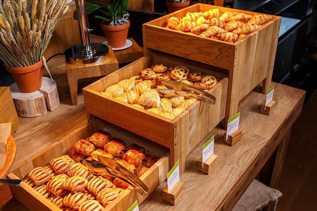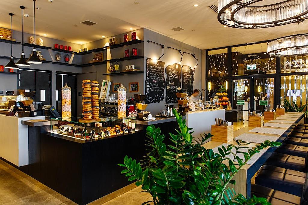 В отеле действуют несколько кафе, баров и ресторанов. Утро можно начать в кафе Beans & Leaves с богатым выбором чая, кофе и свежей выпечки на вынос. Из ресторана BARDOT XXI открывается великолепный вид на город и реку Свилочь. Кухня ориентирована на азиатские блюда. К ним предлагают обширную винную карту с шампанским, коктейлями и крепким алкоголем.