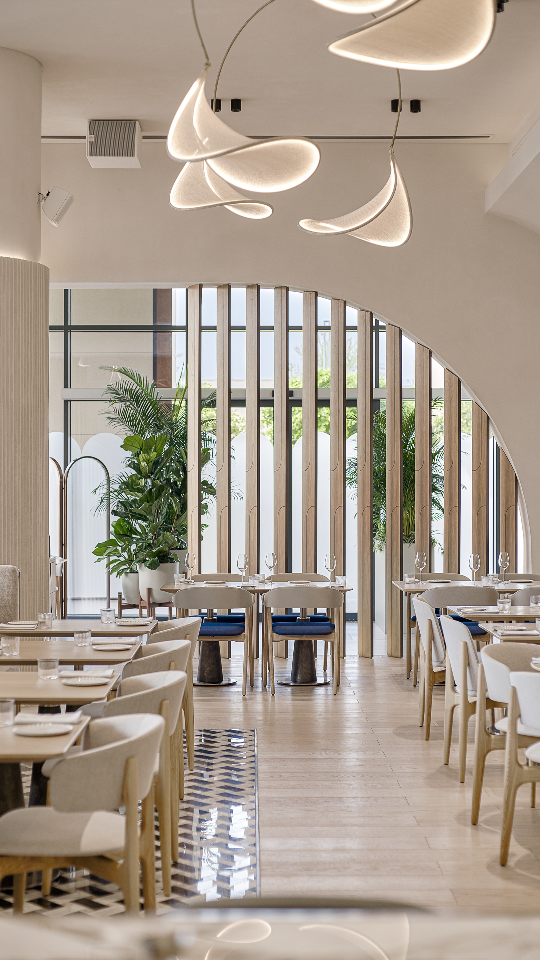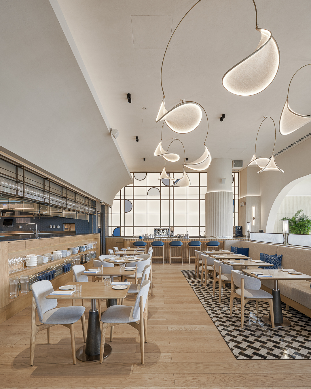 Пространство отличает гармонично выстроенная работа с естественным светом, которого здесь очень много.