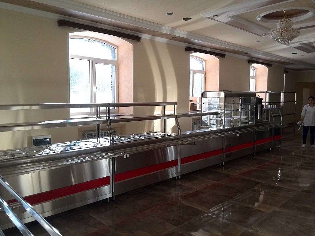 Реализация блюд, как в классических столовых, производится по системе Free flow: поток людей движется через прилавки холодных и горячих блюд, мармитов, от салата к компоту. Линия раздачи ABAT АСТА обеспечивает хорошую демонстрацию продукции. Двухуровневые полки сверху увеличивают площадь выкладки блюд. Обычно на них размещают выпечку – хлеб, лаваш, пирожки. Ножки, регулируемые по высоте, позволяют сгладить неровности пола.