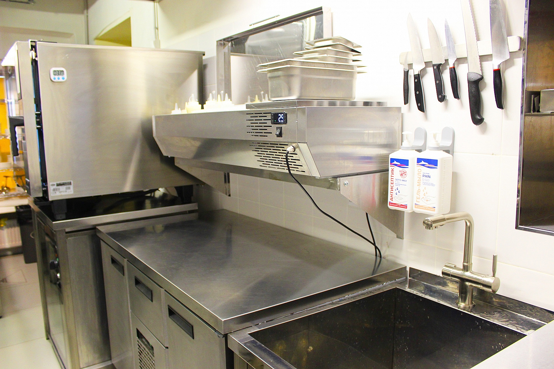 Холодильное оборудование представлено морозильными и холодильными шкафами, столами и витринами различных размеров, которые обеспечивают необходимые условия для хранения продуктов и полуфабрикатов.