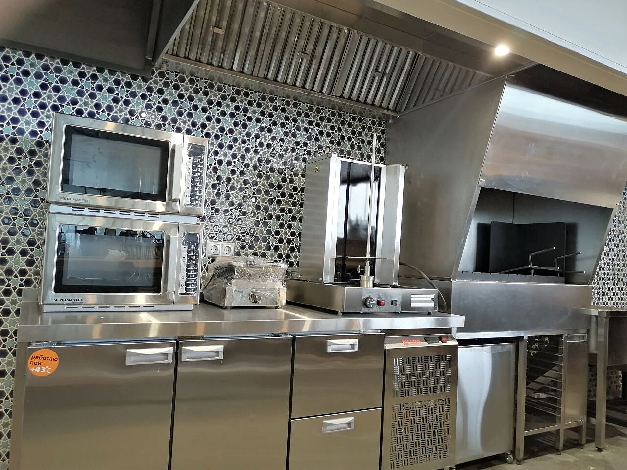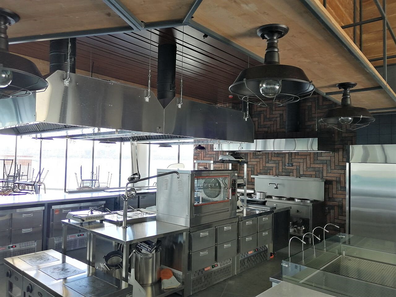Наши сервис-инженеры собрали холодильные камеры, зоны подготовки, смонтировали и подключили тепловые острова. В течение 8-недельного периода построили зоны для хранения продуктов, мытья посуды, смонтировали все вытяжные зонты и подключили аппараты к воде и электричеству.