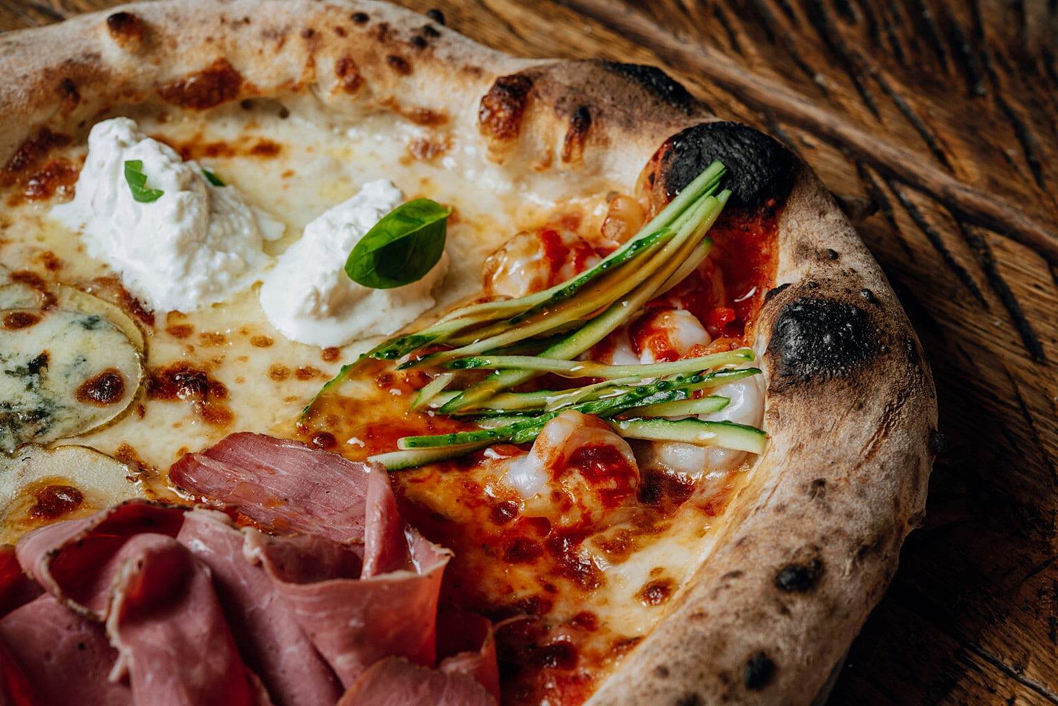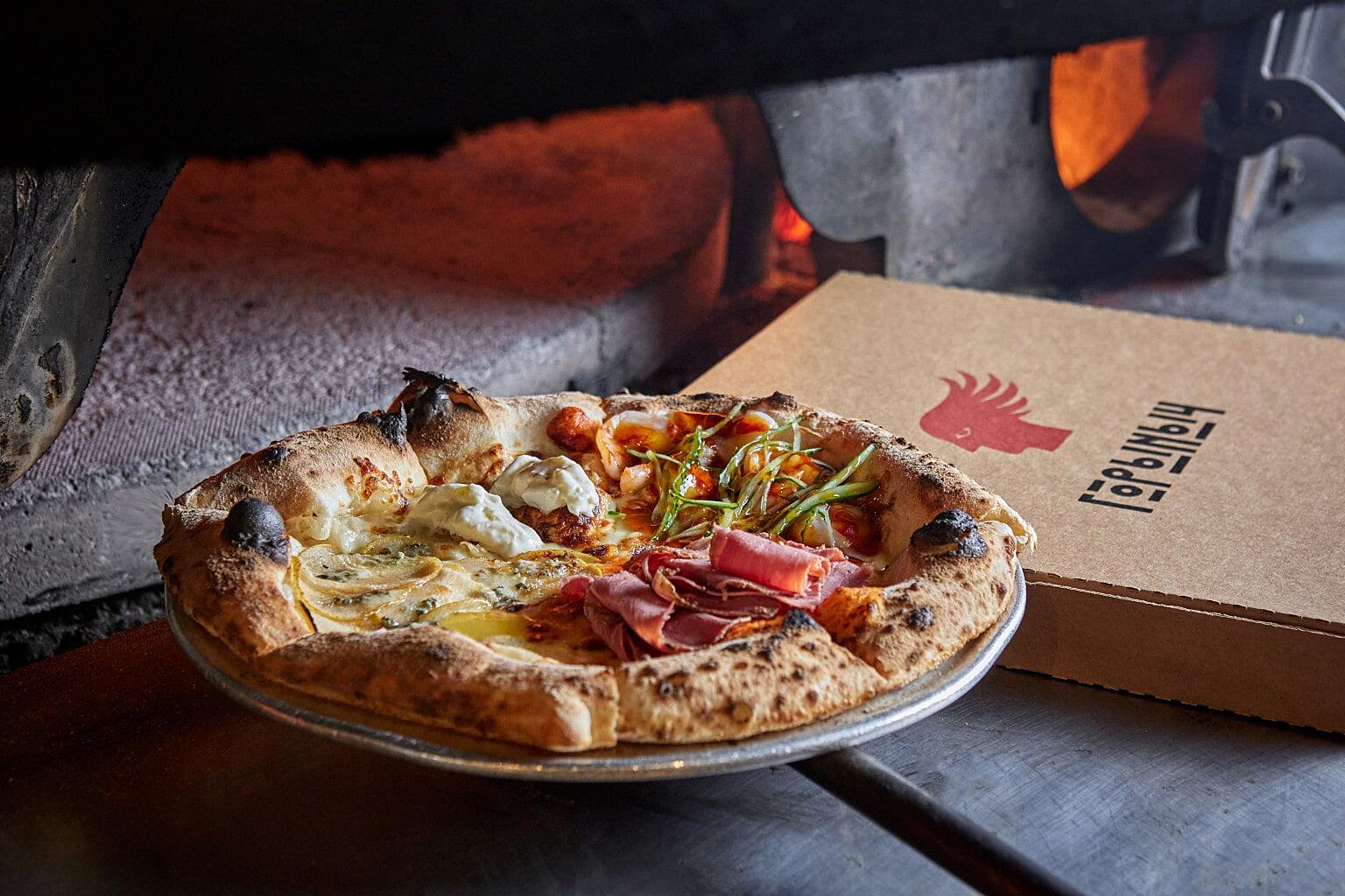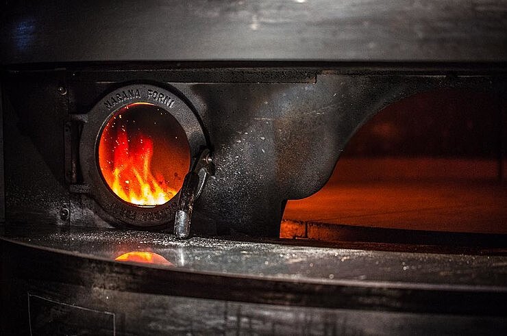 И, конечно, центр всеобщего внимания — 2,5 тонная итальянская дровяная печь Marana Forni, на которой выпекают «визитную карточку» ресторана — неаполитанскую пиццу. Стоит отметить, что таких печей установлено всего три в России, одна из них также стоит в московском «Горыныче».