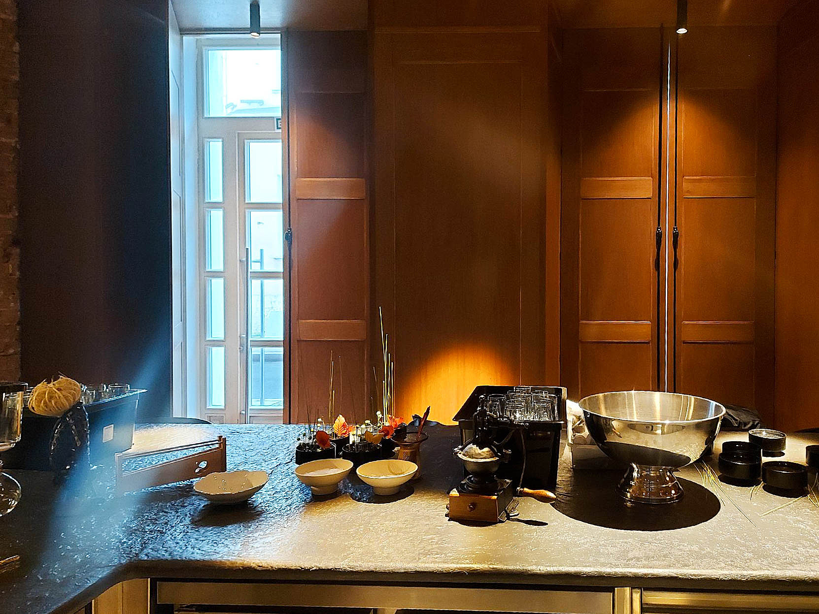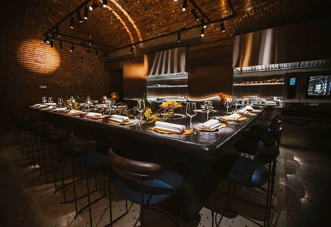 Попасть в заведение не так просто, плотное бронирование на два месяца вперед. Ажиотаж вокруг новинки подкреплен небольшим количеством мест, в зале находится один общий стол на 16 персон. Однако попасть туда однозначно стоит, именитые повара готовят прямо на глазах у гостей, рассказывая разные истории через свои блюда.
